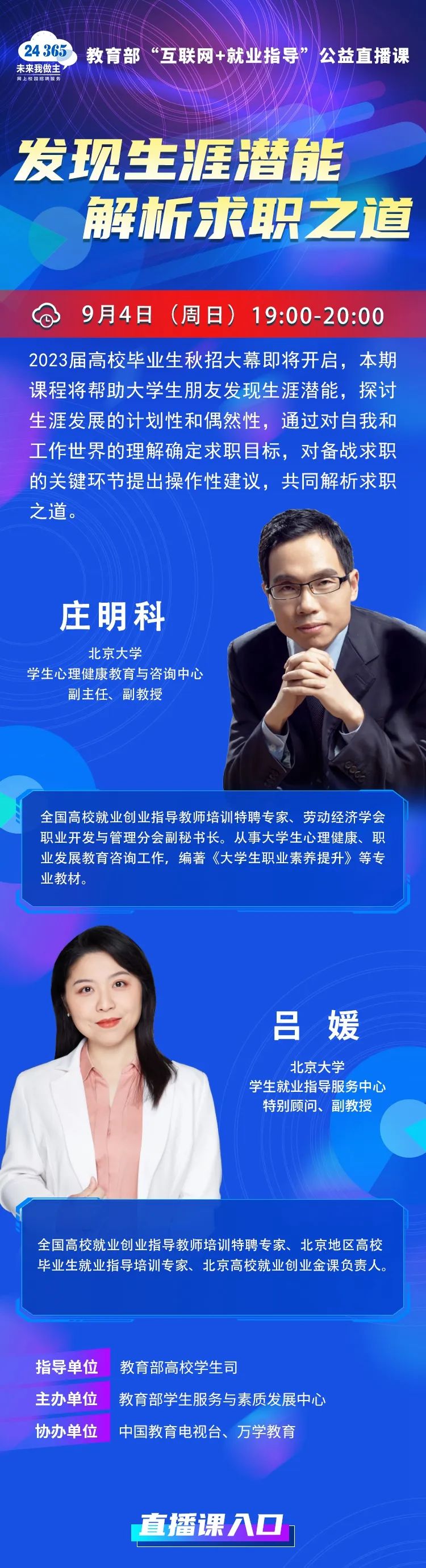 课程预告 | 教育部24365就业公益直播课:发现生涯潜能,解析求职之道