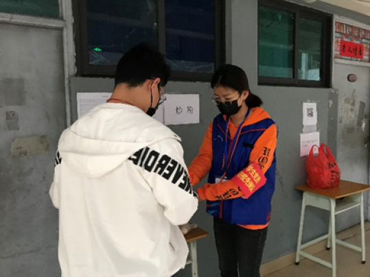检查同学们测量体温情况