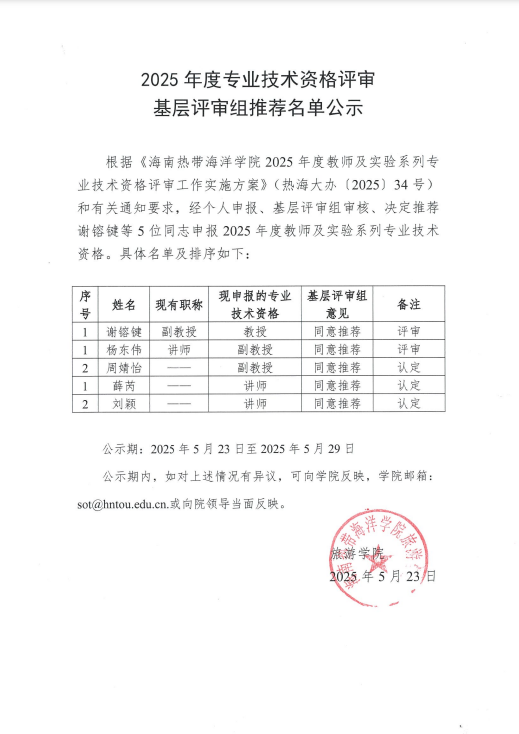 2025年度专业技术资格评审基层评审组推荐名单公示