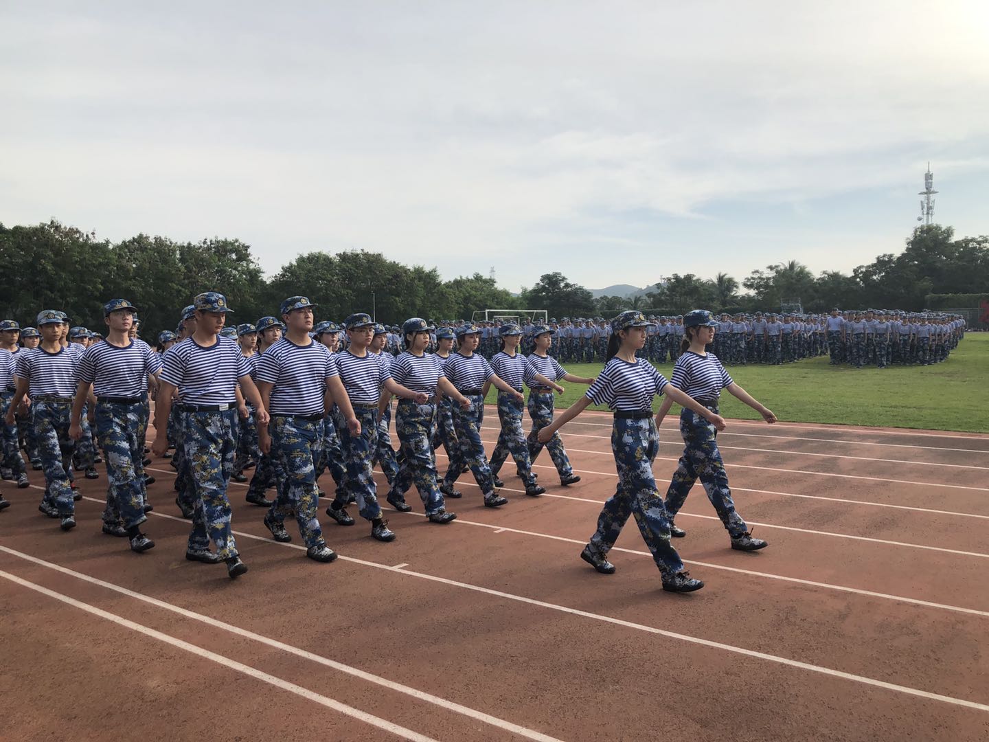10月27日上午,公司在三亚校区运动场隆重举行2020级军训汇演暨总结表彰大会。南部战区31646部队海防营教导员张革稳少校、副教导员钟行佳少校,公司党委书记王长仁,副董事长廖民生、刘湘洪,党委委员穆军参加大会,副董事长杨兹举主持。