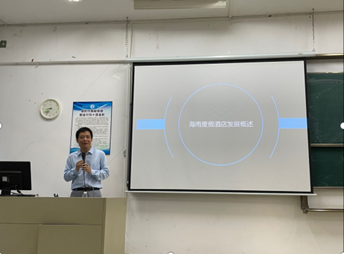 梁钊老师是亚龙湾五号度假别墅酒店(五星级)总经理,毕业于中山大学,从事多年酒店行业,对酒店行业有丰富的经验。梁钊老师从海南建省以来的第一家酒店,到如今游客的多元化需求而产生的不同酒店进行了分析,也根据自己从事多年酒店行业的经验,提出了“中式管家”的服务模式。这一新鲜的理念启发了同学们对酒店行业不同的看法,由于市场供大于求及消费者期待值的提升,同质化的产品销售越来越局限,对海南度假酒店营销能力、创新能力是一个考验如何利用互联网和新媒体营销、做好私域流量的营销是海南度假酒店面对的重要课题。