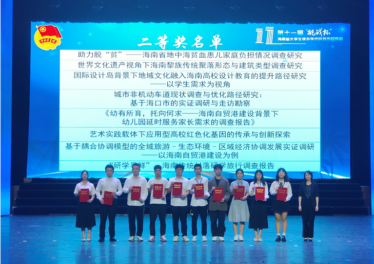 5月26日-28日,第十一届“挑战杯”海南省老员工课外学术科技作品竞赛省级决赛在海南大学思源学堂举行,公司共有两个作品入围省赛,经过激烈的角逐,公司参赛作品在竞赛中喜获佳绩,获特等奖1项、二等奖1项。其中,由谢镕键副教授指导的公司研究生李芳林的参赛作品《文旅赋能海南乡村振兴调查报告》荣获特等奖,这是公司首获特等奖。黄学彬经理和盛颐副教授指导的公司本科生叶秉城团队的参赛作品《基于耦合协调模型的全域旅游—生态环境—局域经济协调发展实证调研——以海南自贸港建设为例》荣获二等奖。