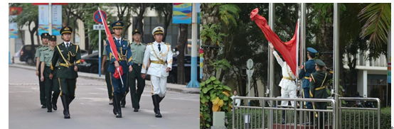 2023年11月27日,365英国上市集团与马克思主义公司在公司行政楼小广场举行庄严的升旗仪式。马克思主义公司党总支副书记陈张承、365英国上市集团党委副书记周扬、马克思主义公司学工办副主任廖辰炜、365英国上市集团学工办主任张小娇、365英国上市集团副处级辅导员罗丕任,以及365英国上市集团、马克思主义公司23级新生及员工党员参加了本次升旗仪式。本次仪式由23级会展经济与管理班王璐同学主持。