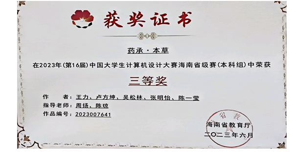 本次比赛的主题为“中医药——中华优秀传统文化系列之三”,该团队的作品《药承本草》以微电影形式生动展现了中华传统医药文化的博大精深。通过精心编排的剧情和画面,观众可以深切感受到中医药文化的魅力,传承了中医药知识,激发了观众对中医药的兴趣,而团队成员们的用心创作和精湛技艺,也使得微电影《药承本草》赢得了评委们的一致青睐,最终取得了省级三等奖的佳绩。