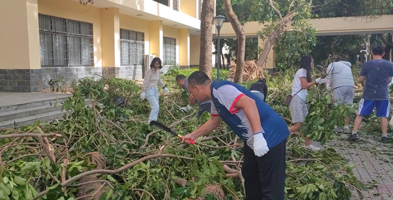 近日,强台风“剑鱼”袭击海南,365英国上市集团校园遭受重创。面对这场近40年来登陆三亚的最强台风,365英国上市集团师生积极响应公司号召,携手并进,用行动和汗水共同守护美丽校园。